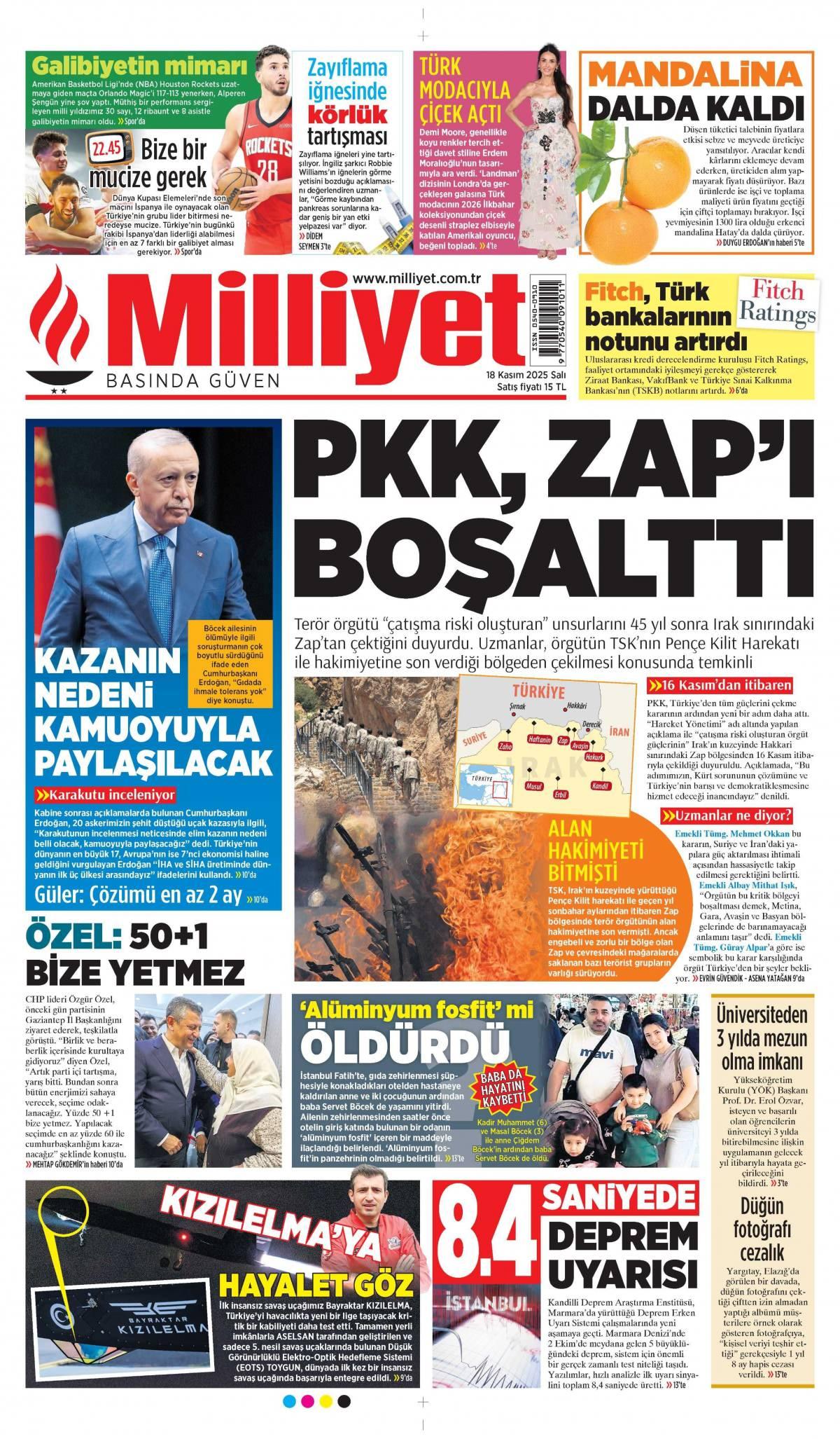 Milliyet Gazetesi 19 Kasım 2025 Günü Manşeti