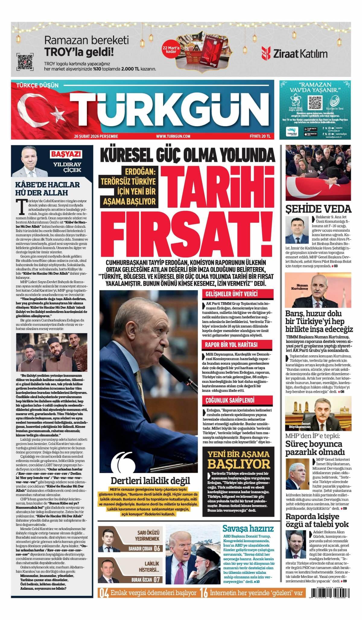 Türkgün Gazetesi 27 Şubat 2026 Günü Manşeti