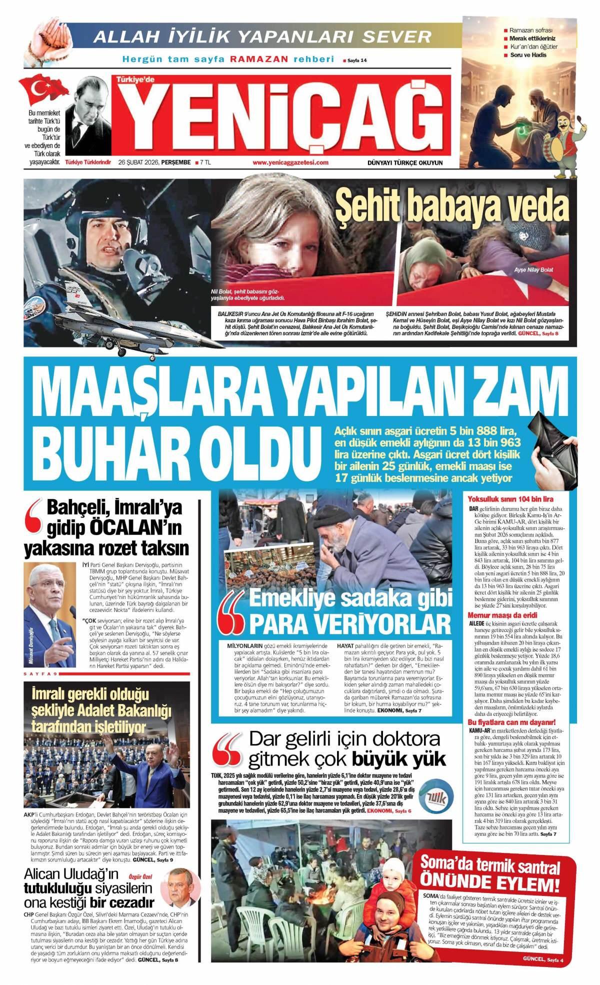 Yeni Çağ Gazetesi 27 Şubat 2026 Günü Manşeti