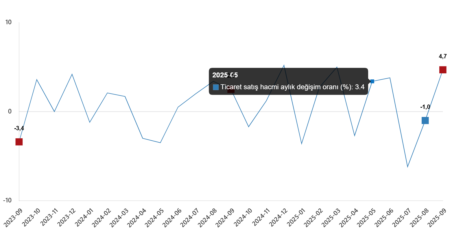 Ticaret satış hacmi aylık değişim oranı (%), Eylül 2025